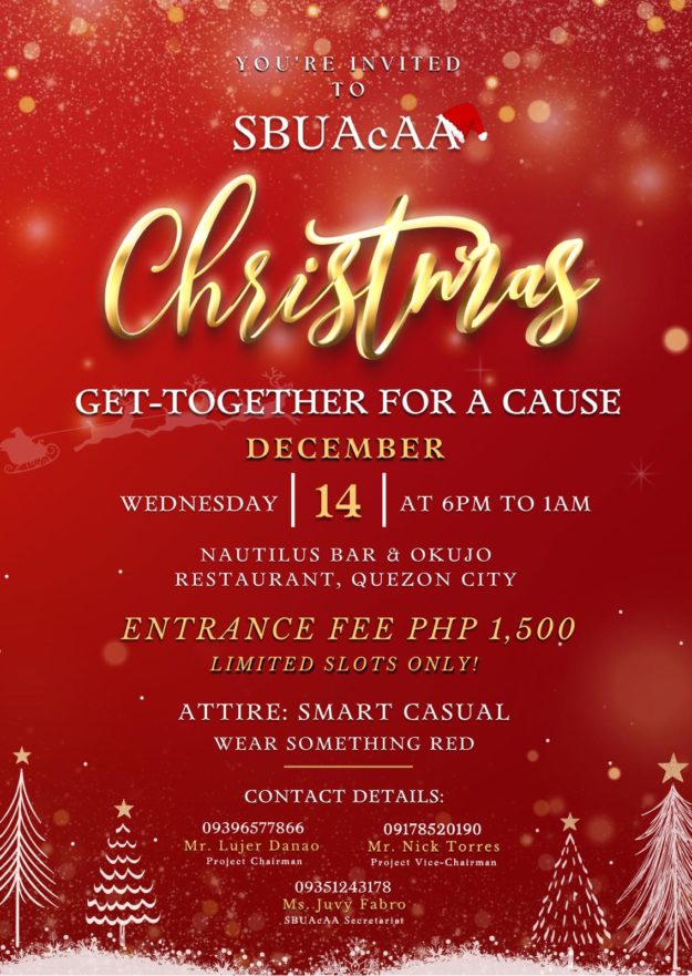 The San Beda University Accountancy Alumni Association (SBUAcAA) will hold its first onsite activity, the Christmas Get-Together for a Cause. This event will be held on Wednesday, 14 December 2022, 6pm at Nautilus Bar and Okujo Restaurant Quezon City. Aside from being a fellowship activity for accountancy graduates, this event will also be an opportunity…