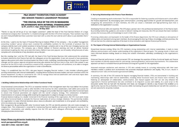 For more inquiries, you may contact the FINEX Academy Secretariat at sarah.parapara@finex.org.ph