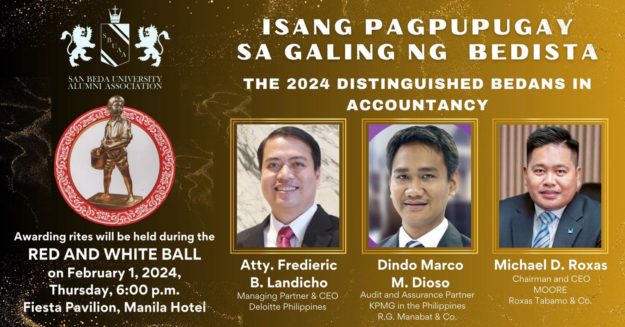 Awarding rites will be held during the Red and White Ball on February 1, 2024 at the Fiesta Pavilion, Manila Hotel, 6pm.
