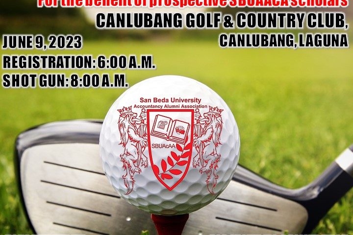INVITING ALL BEDAN ACCOUNTANTS AND FRIENDS! SAN BEDA UNIVERSITY ACCOUNTANCY ALUMNI ASSOCIATIO 2023 INAUGURAL GOLF TOURNAMENT CANLUBANG GOLF & COUNTRY CLUB, CANLUBANG, LAGUNA JUNE 9, 2023 REGISTRATION: 6:00 AM SHOTGUN:…